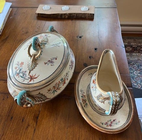 Our mother had a particular phrase that my sister and brother use to this day; even thinking of it makes me smile. In my family, like many others, the rule was that the cook didn’t clean up, especially on holidays. It was someone else’s job to take over the dirty kitchen with its pots and pans, a gravy boat, more plates than it seemed a family could possibly use, and several vegetable tureens that had belonged to my great-grandmother. This was our good china, which couldn’t be washed in a dishwasher, and was only brought out for special occasions. The dishes had shiny bronze-coloured paint around the edges, which a dishwasher would have destroyed. Every Christmas, Easter, Thanksgiving and birthdays, the good china made its appearance. My family wasn’t religious; these were grand reasons to get together and celebrate with good food.